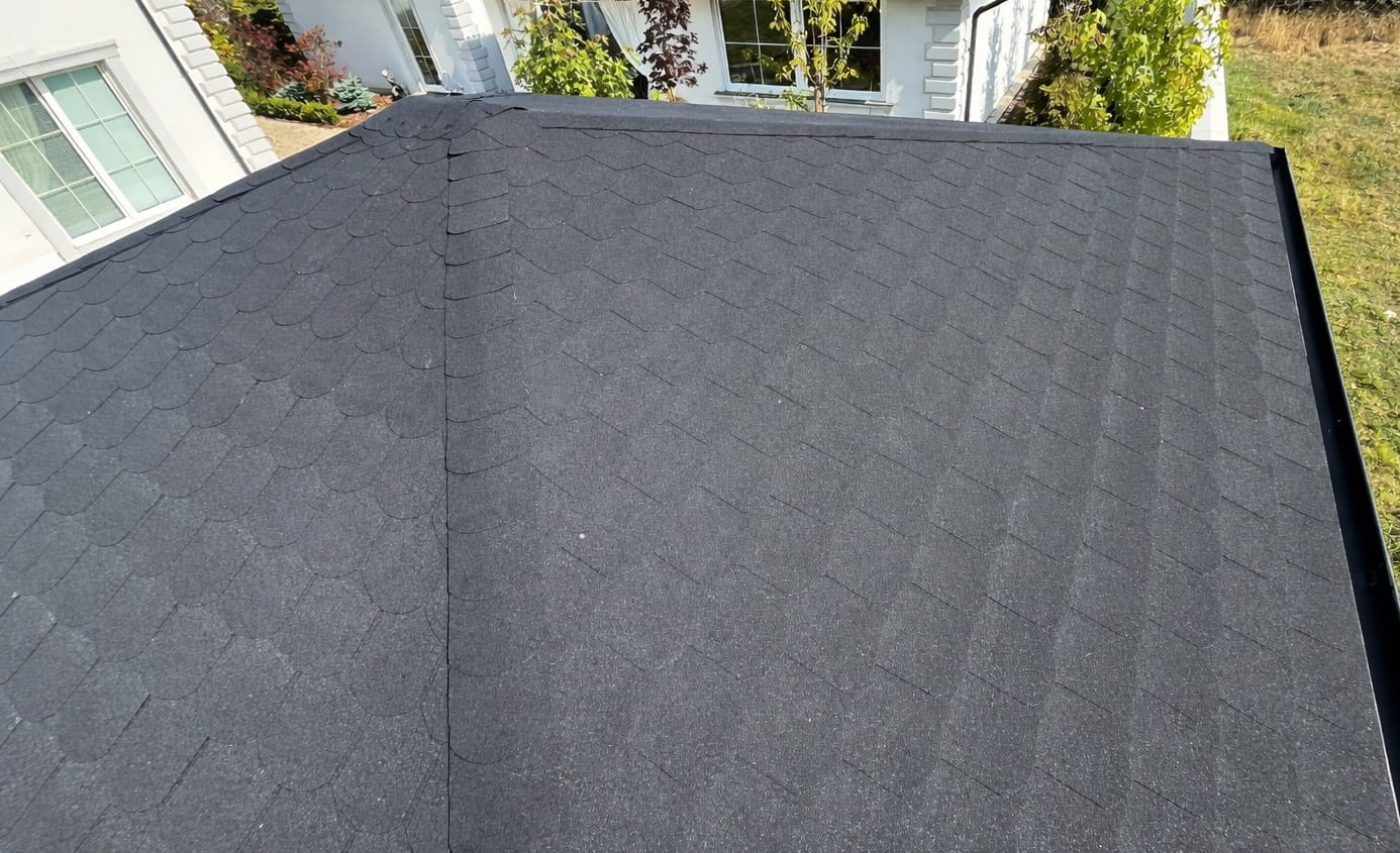 - pokrycie solidnym gontem bitumicznym, z papą podkładową i z obróbkami blacharskimi;