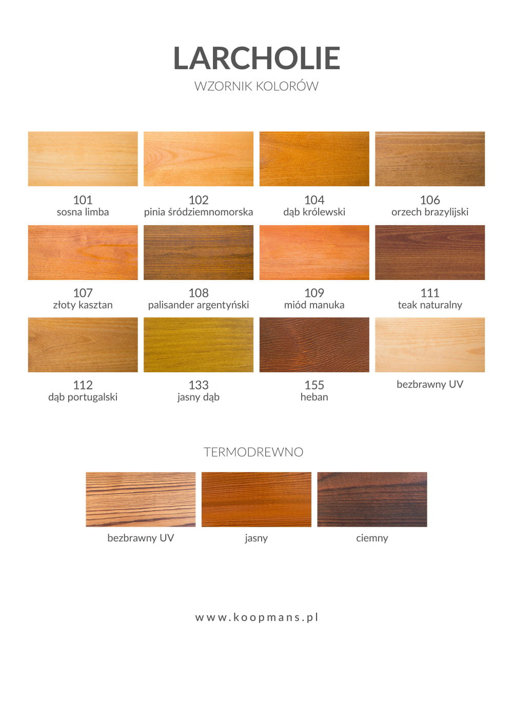 Produkt również bardzo dobrze współgra z drewnem obrobionym termicznie, tworząc trudną do wypłukania warstwę odporną na działanie zewnętrznych warunków atmosferycznych.
