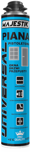 Piana UNIVERSAL (Piana Pistoletowa FPU-2) to poliuretanowa piana montażowo - uszczelniająca o doskonałych parametrach użytkowych. Doskonała przyczepność do typowych materiałów stosowanych w budownictwie takich jak cegła, beton, stal, drewno i twarde PCV, elastyczność i stabilność kształtu (brak skurczów pierwotnych i wtórnych) sprawiają że wykonane nimi uszczelnienia są trwałe i szczelne przez wiele lat. Zwięzła, drobnokomórkowa struktura o zamkniętych porach nadaje pianie wyjątkową stabilność oraz czyni z niej produkt o wysokich parametrach termoizolacyjnych. Wysoka wydajność z jednostkowego opakowania, krótki czas utwardzania, oraz szeroki zakres temperatur pracy pozwalają na prowadzenie prac szybko i komfortowo. Piana występuje w wersji pistoletowej (do profesjonalnej aplikacji za pomocą specjalnego pistoletu). Piana ta występuje także w wersji umożliwiającej stosowanie produktu w okresie obniżonych temperatur od: -10°C.