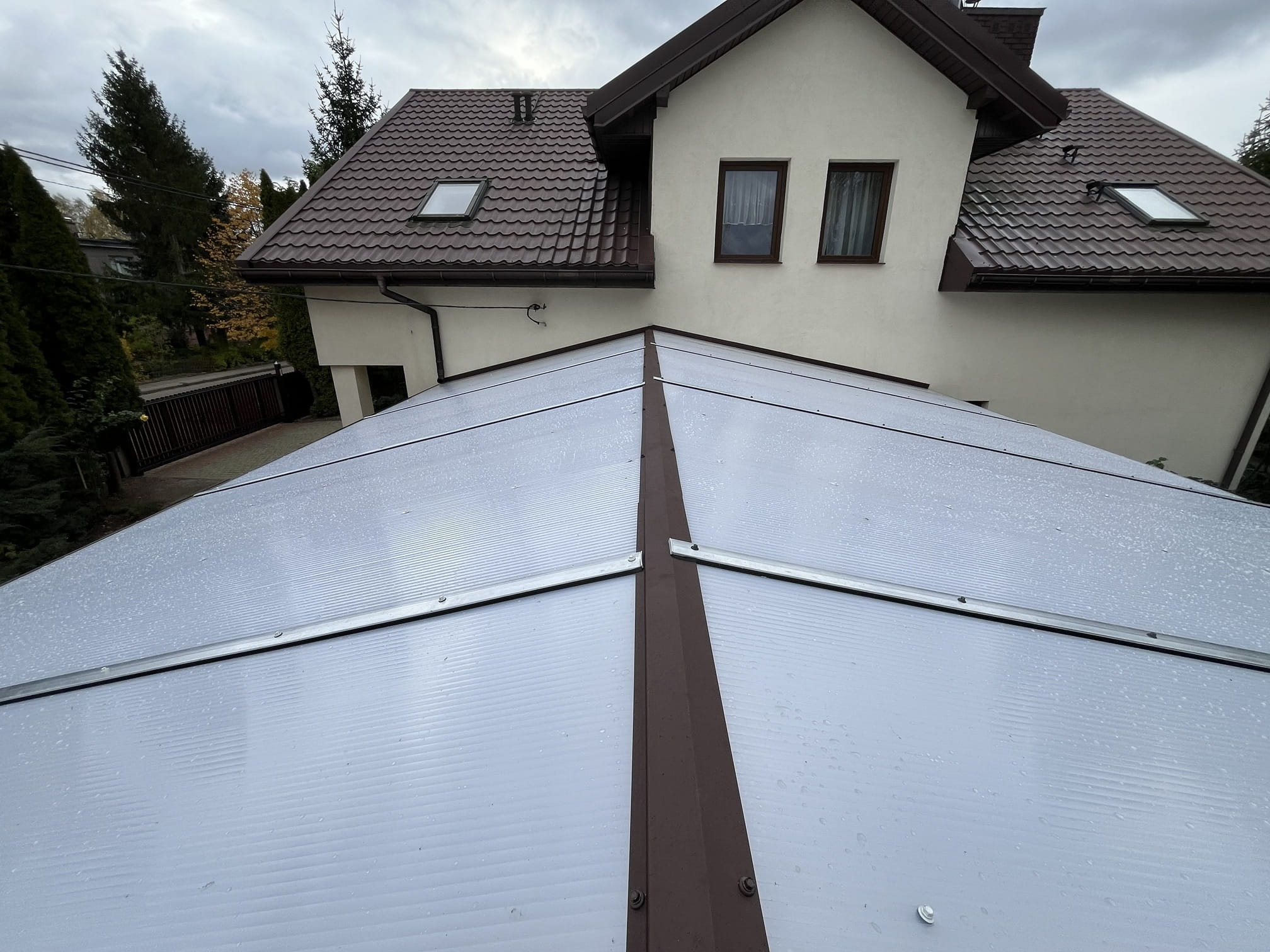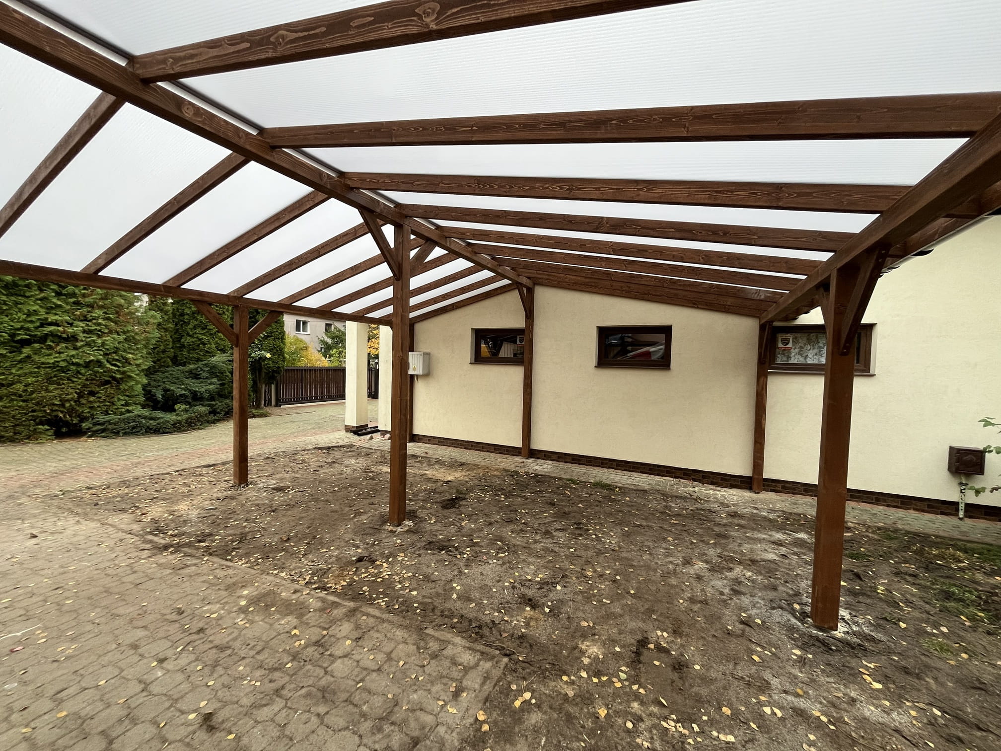 - dach pokryty poliwęglanem komorowym 16mm z okuciem aluminiowym;