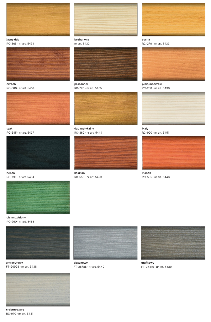 * Kolor bezbarwny oraz biały nadają się tylko na powierzchnie zewnętrzne nienarażone na bezpośredni wpływ czynników atmosferycznych