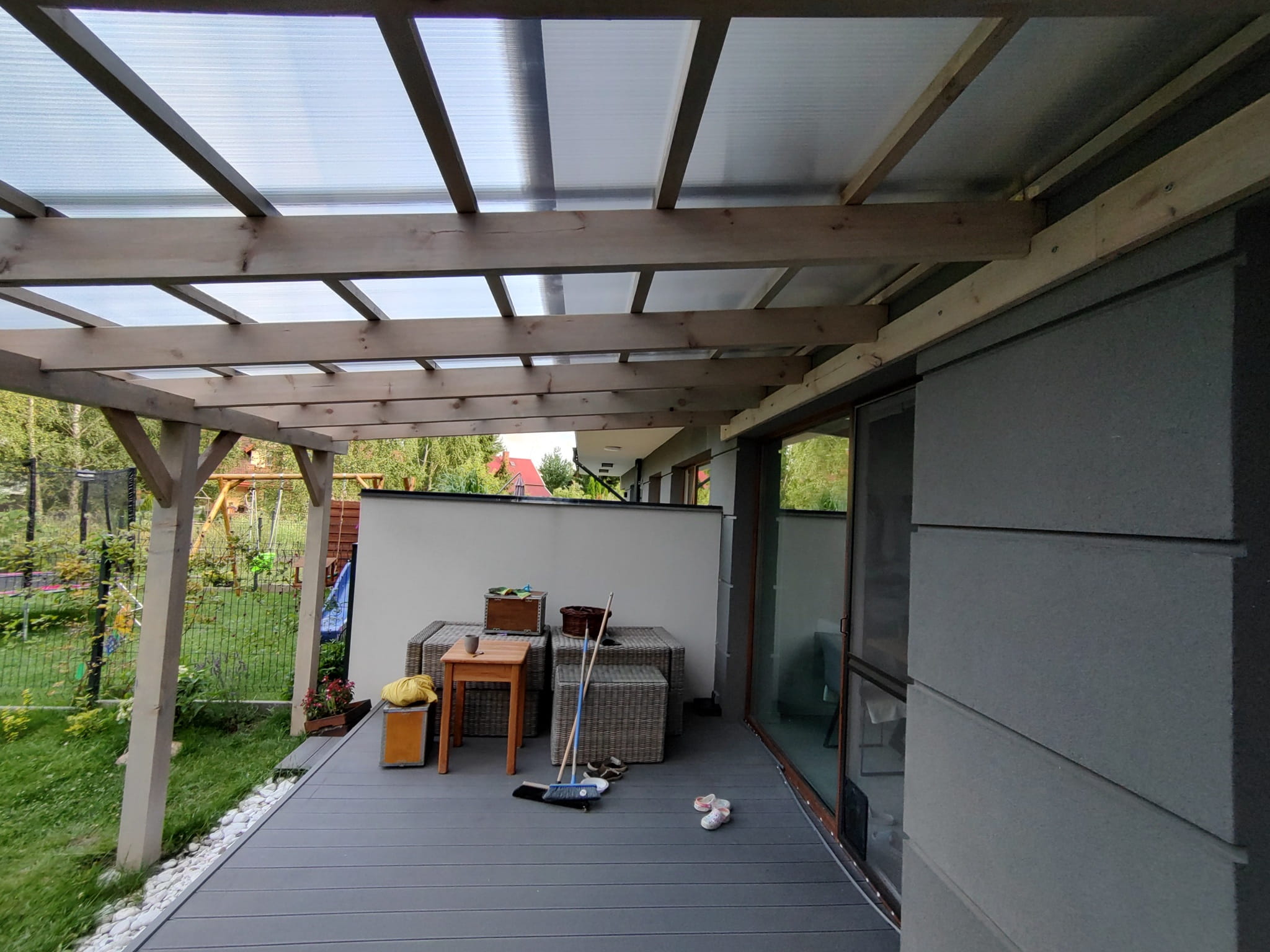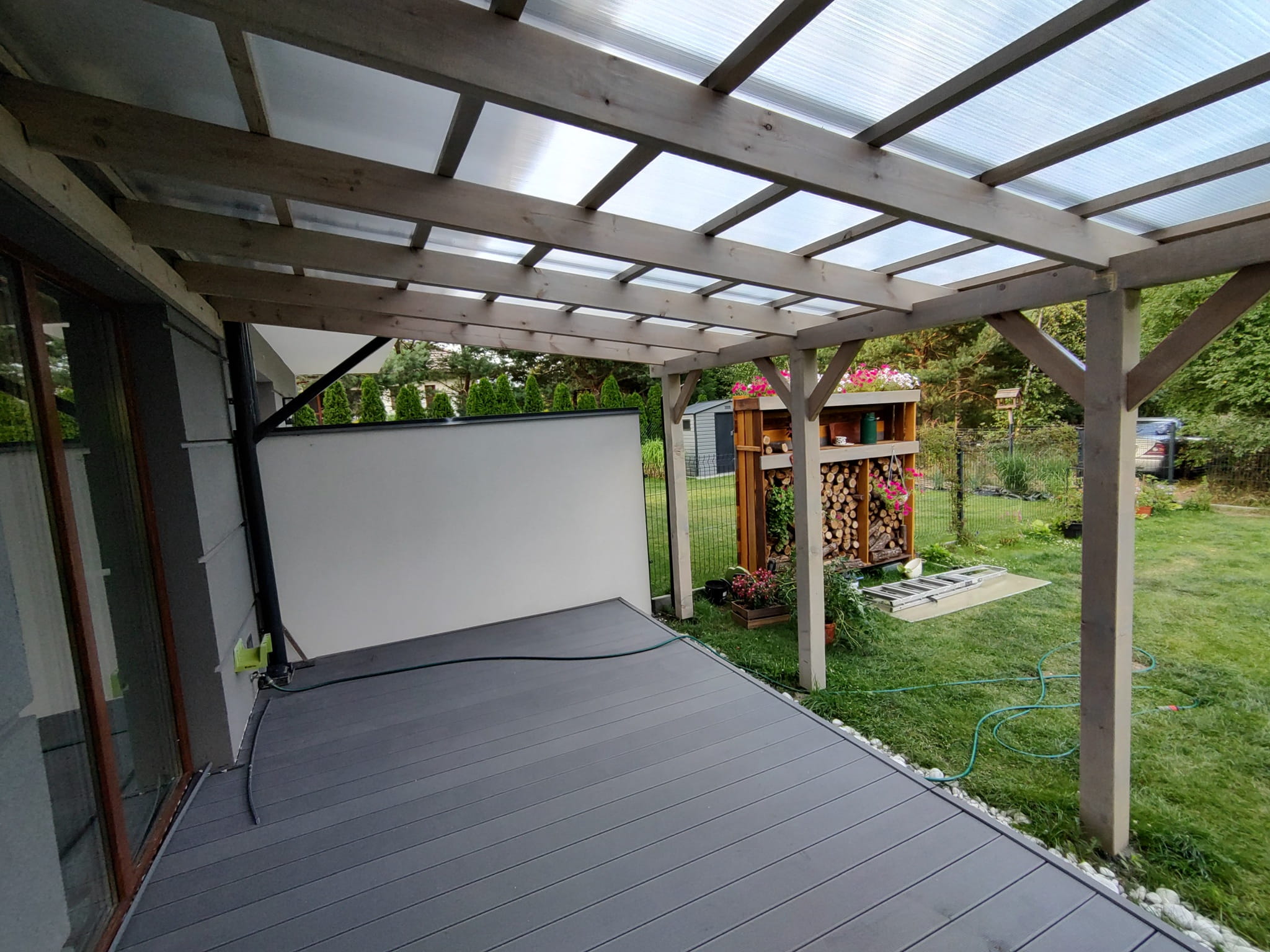 - głębokość (od przodu zadaszenia do ściany budynku): 2,95m, 3,95m, do nawet 5,95m;
