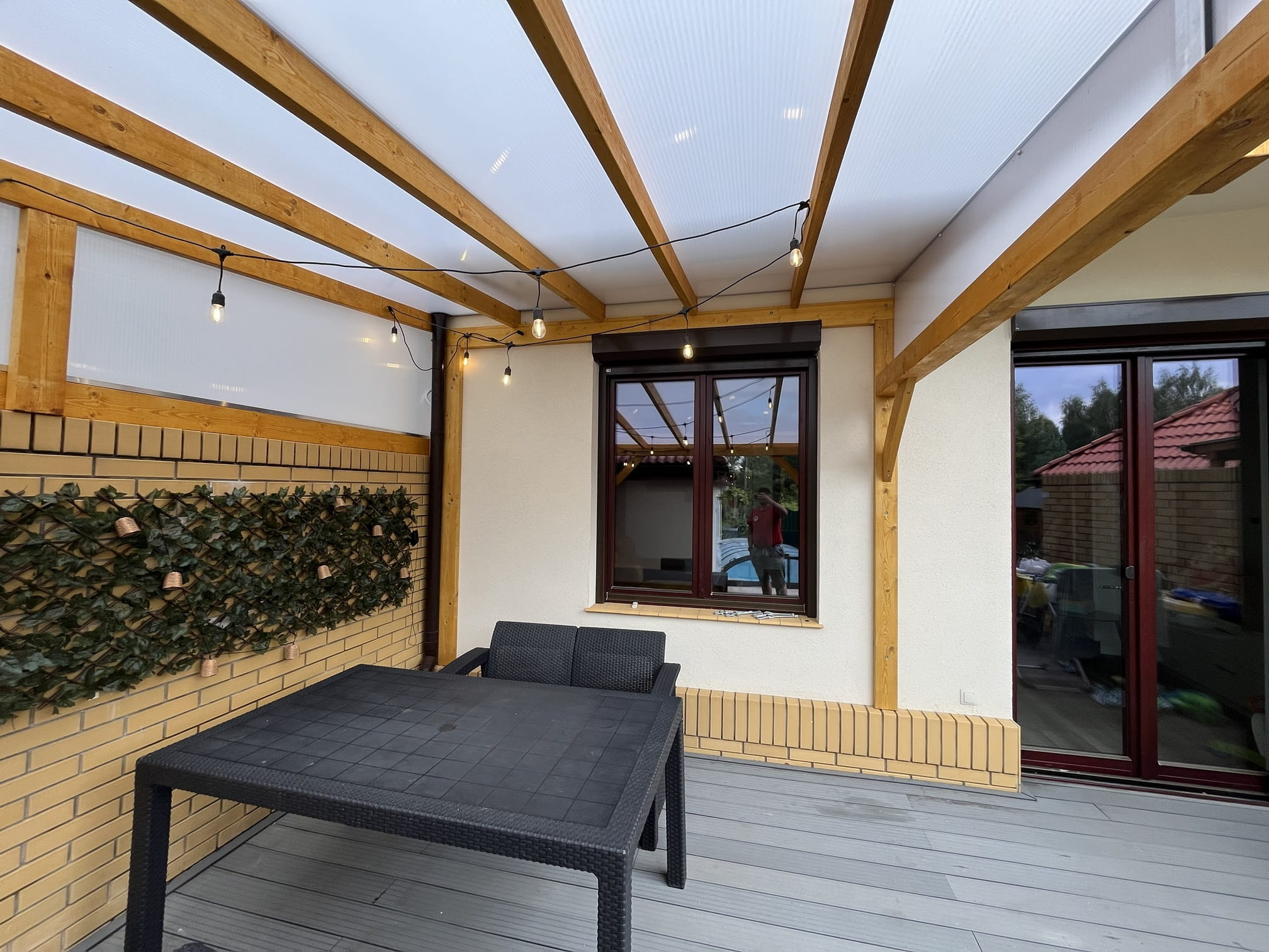 - kliny zabudowane poliwęglanem w kolorze dachu;