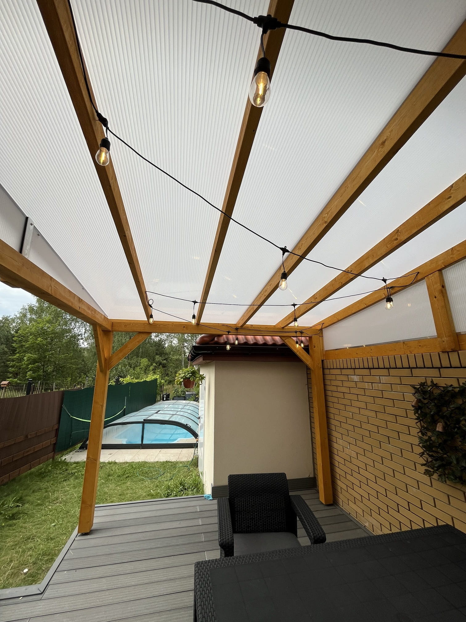 - pokrycie z poliwęglanu komorowego 16mm, z listwą aluminiową z przodu i po bokach;